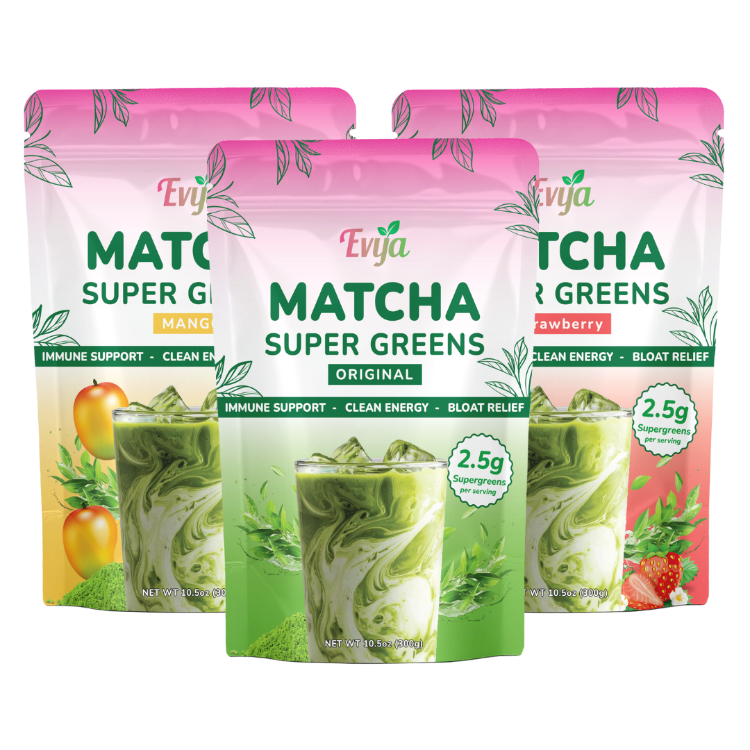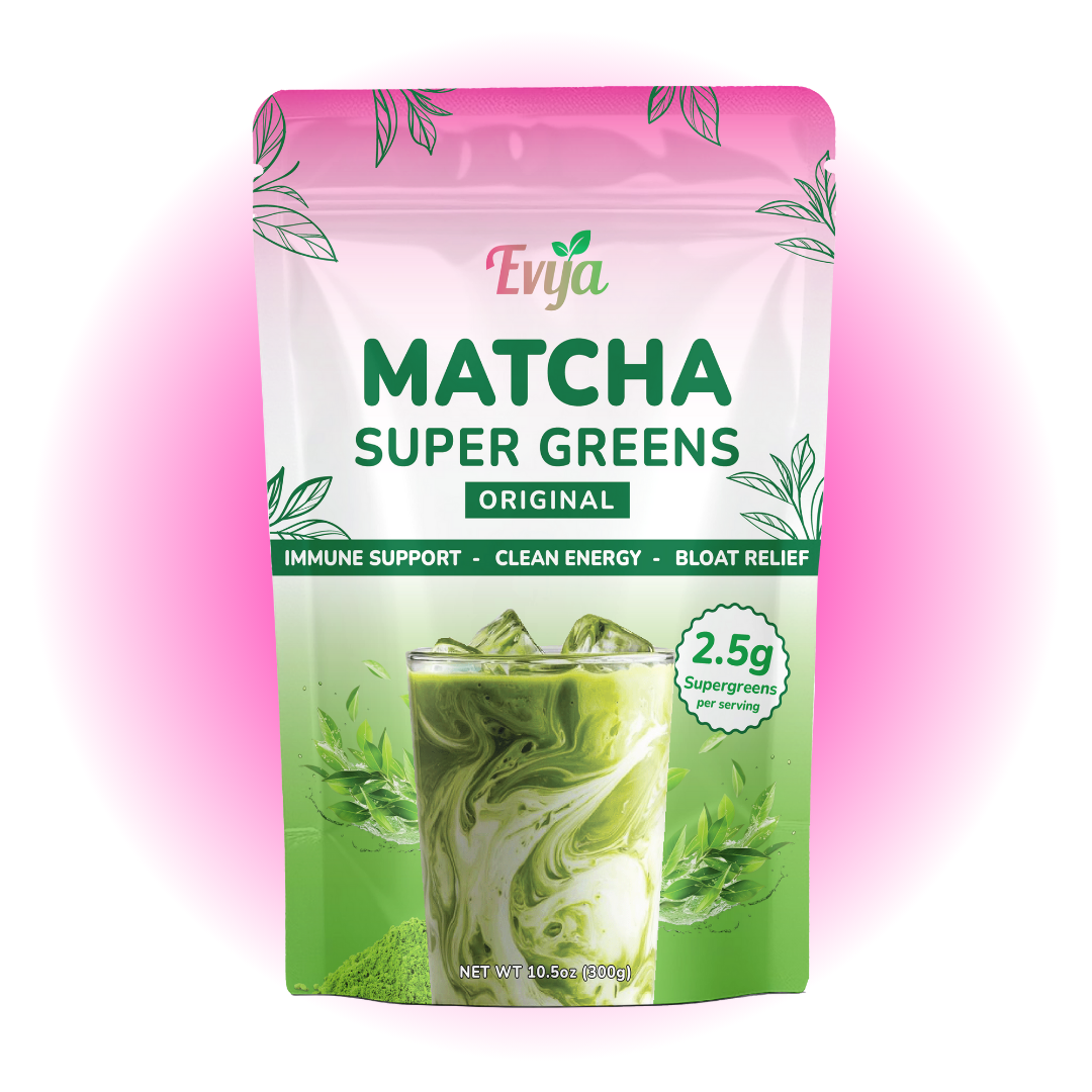 Unlike plain greens, Evya combines matcha, greens, and gut health support (pre, pro, and postbiotics) in one scoop. That means fewer products to buy and a better-tasting daily ritual.